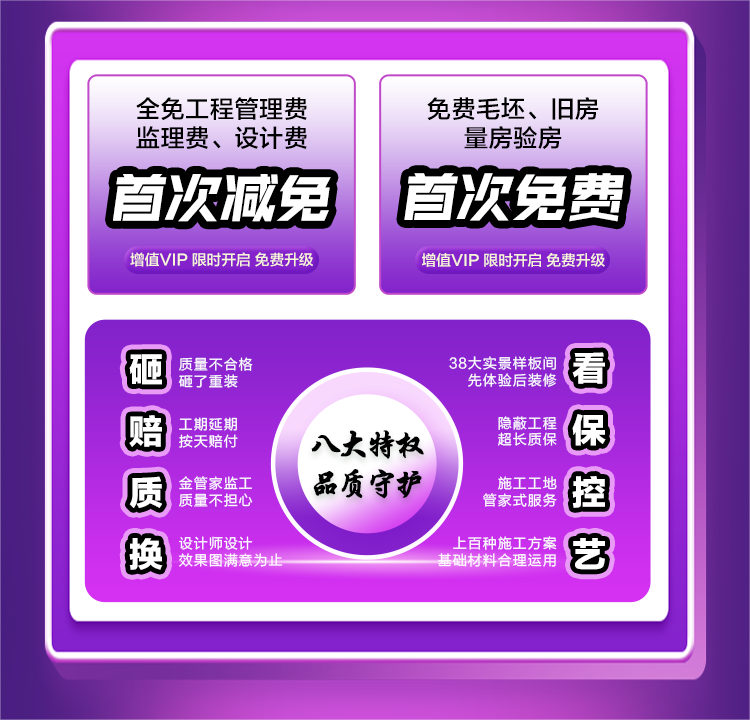 品質(zhì)保障:我們擁有一支專業(yè)的設(shè)計(jì)和施工團(tuán)隊(duì),確保每一個(gè)細(xì)節(jié)都能達(dá)到您的期望。同時(shí),我們還提供全程跟蹤服務(wù),確保裝修過程中的每一個(gè)環(huán)節(jié)都能得到妥善處理。
