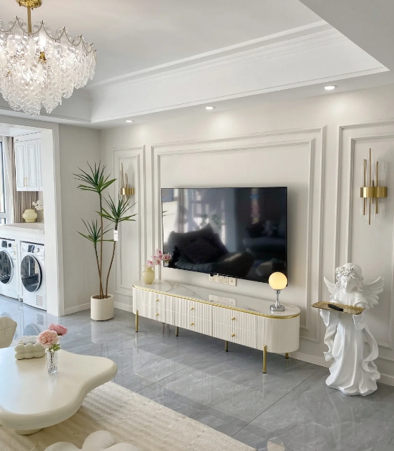 然后,法式奶油風還特別注重細節和質感。比如,墻面通常會選擇帶有紋理的乳膠漆,看起來既有質感又不失溫柔。家具方面,也是以簡約、復古為主,配上一些金屬或木質的裝飾元素,整個空間就顯得既高級又不失溫馨。